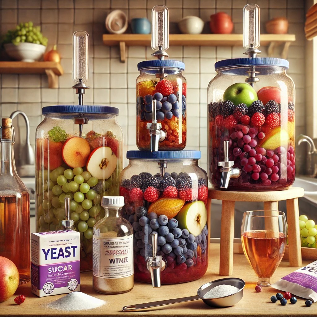 - 설탕: 발효 과정에서 효모의 활동을 지원하는 핵심 재료로, 와인의 단맛을 조절합니다.
