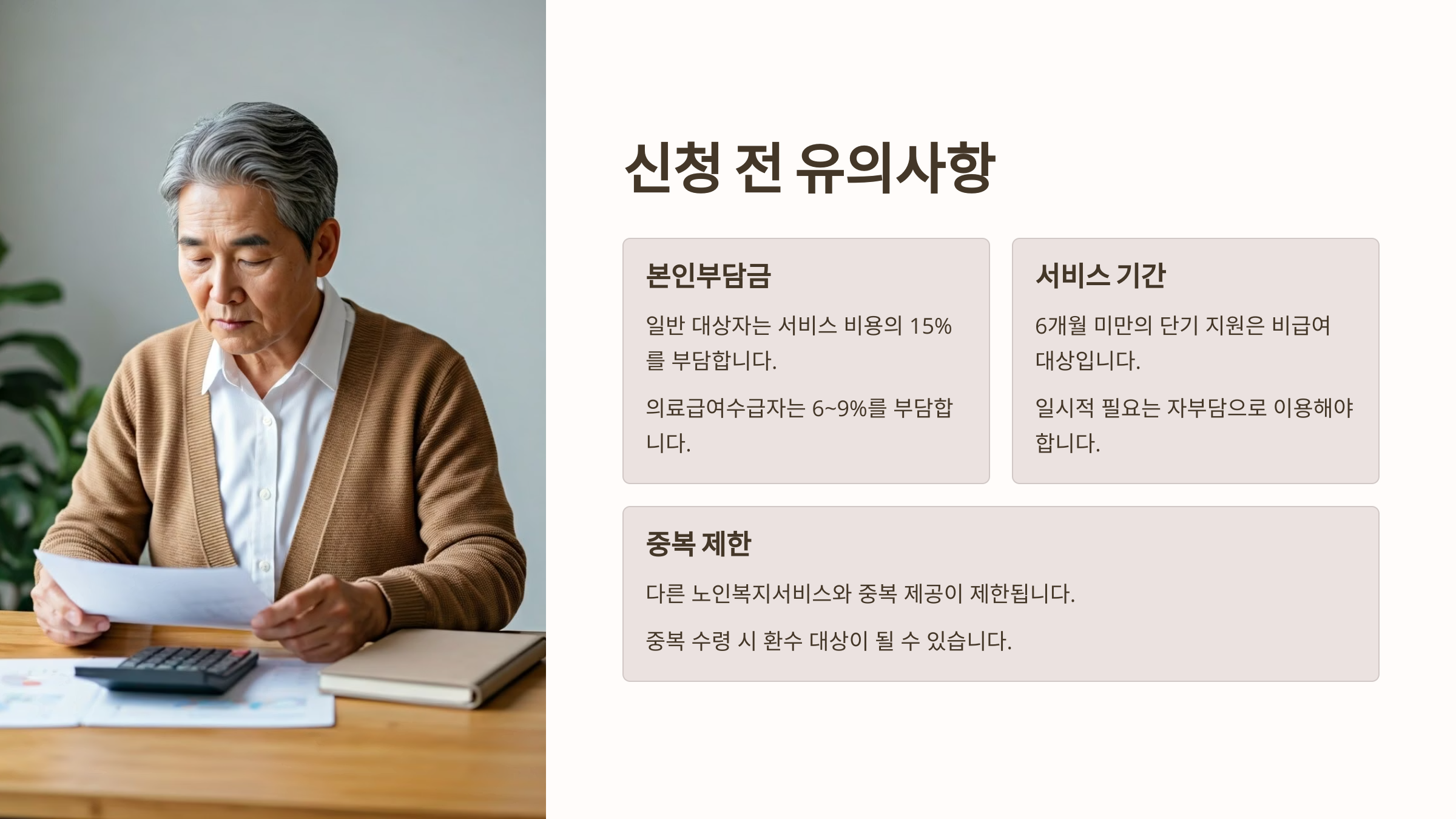 각 서비스는 등급과 개인 상황에 따라 맞춤형으로 제공돼요.