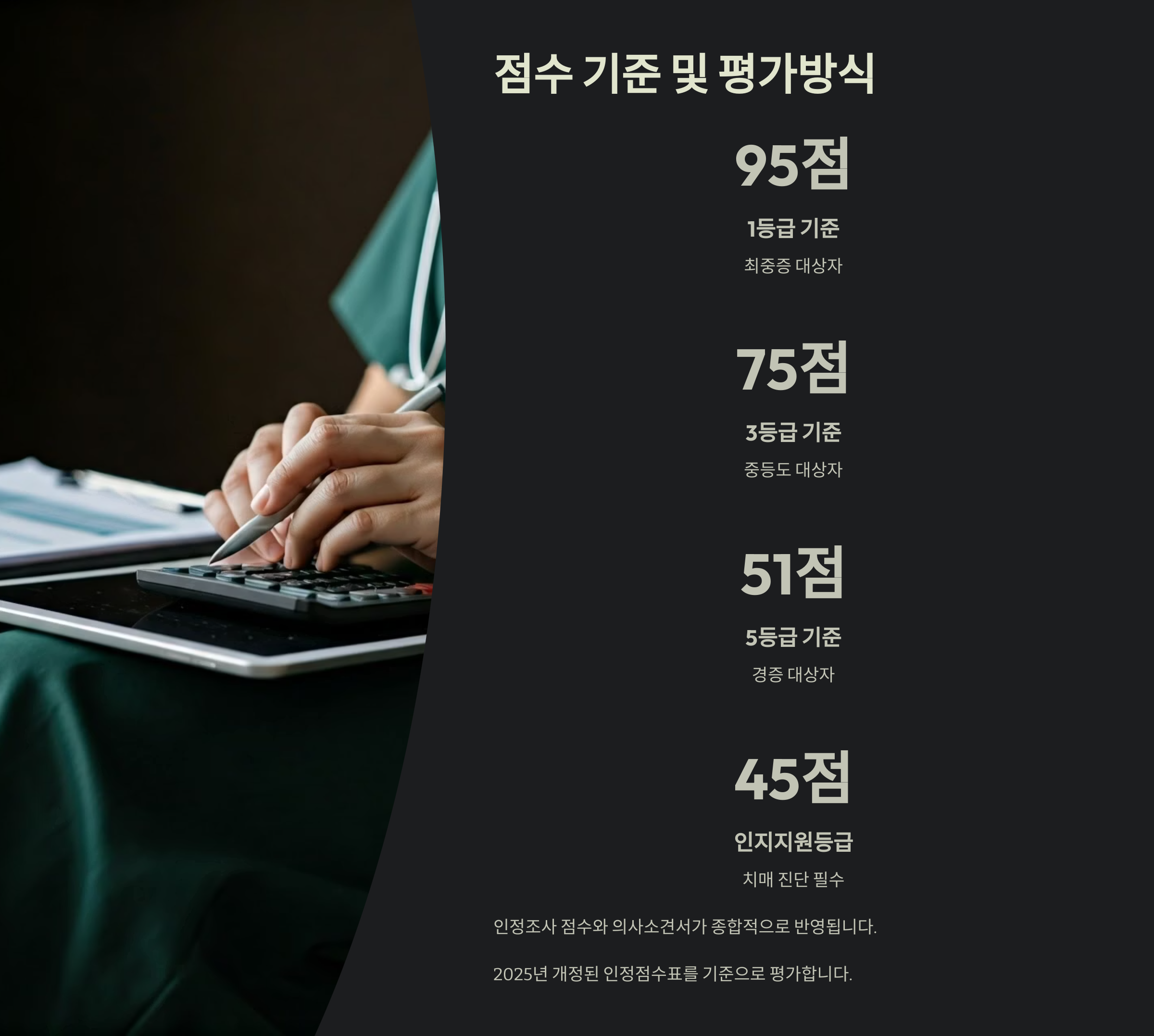 실제 판정은 종합 점수 외에 의사소견, 생활환경 등도 반영된다는 점 참고해 주세요.