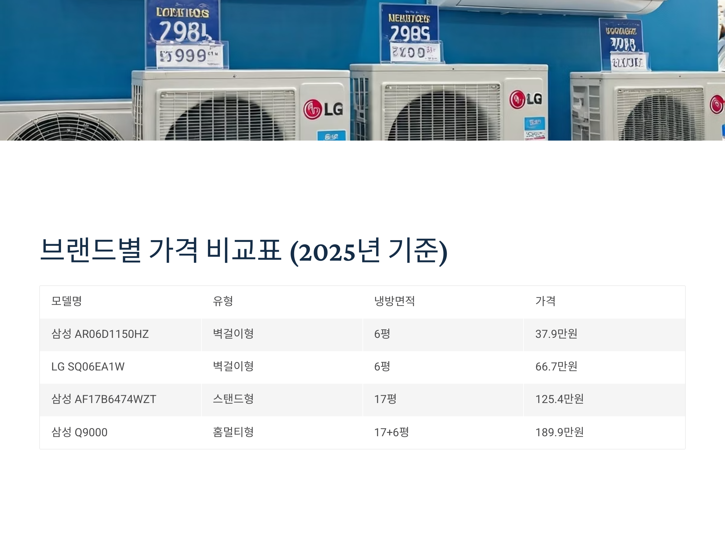 | 브랜드 | 모델명 | 형태 | 냉방면적 | 예상가 |