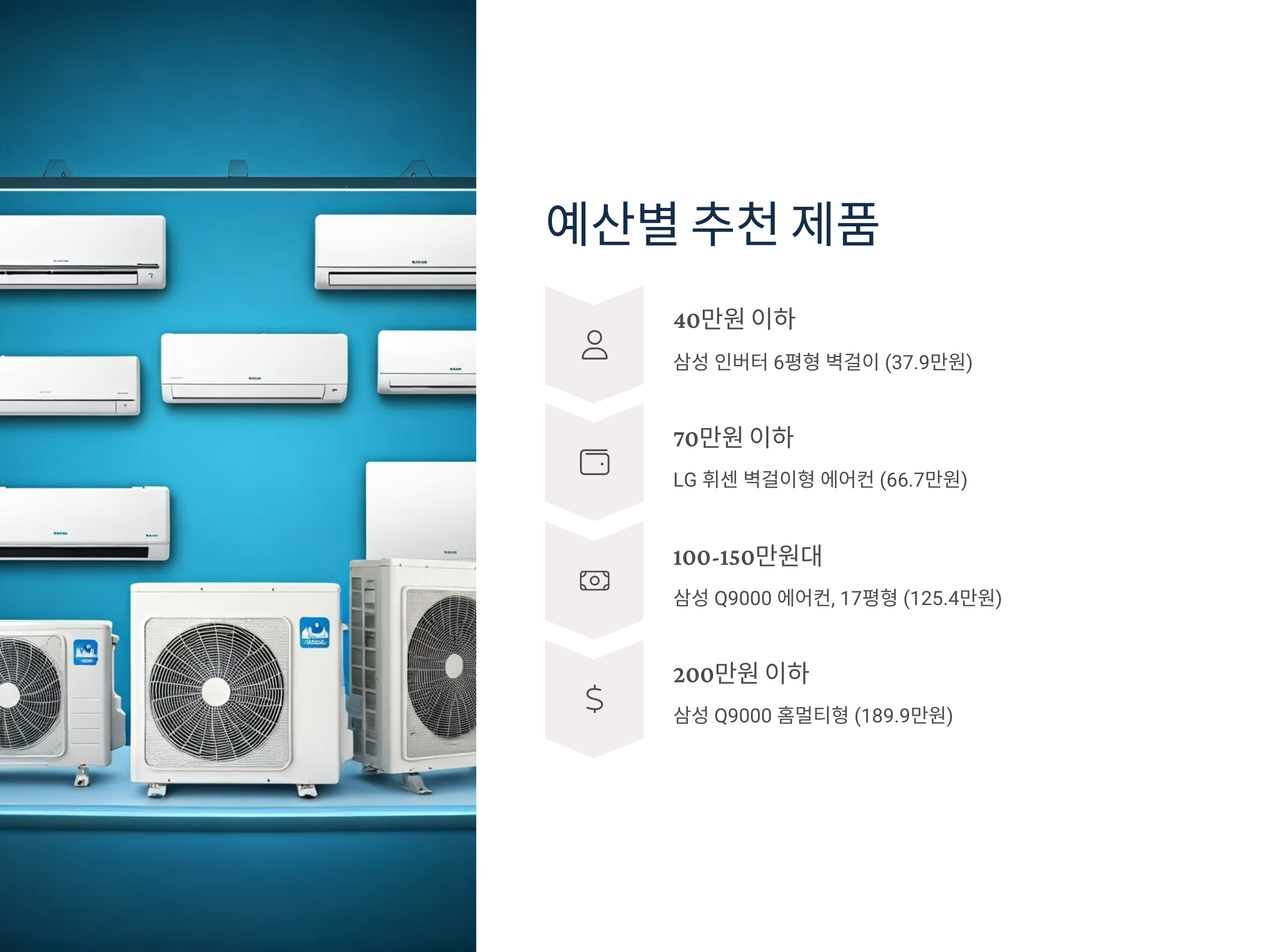 - 🟢 80~100만 원: 삼성 무풍 벽걸이 / LG 휘센 벽걸이
