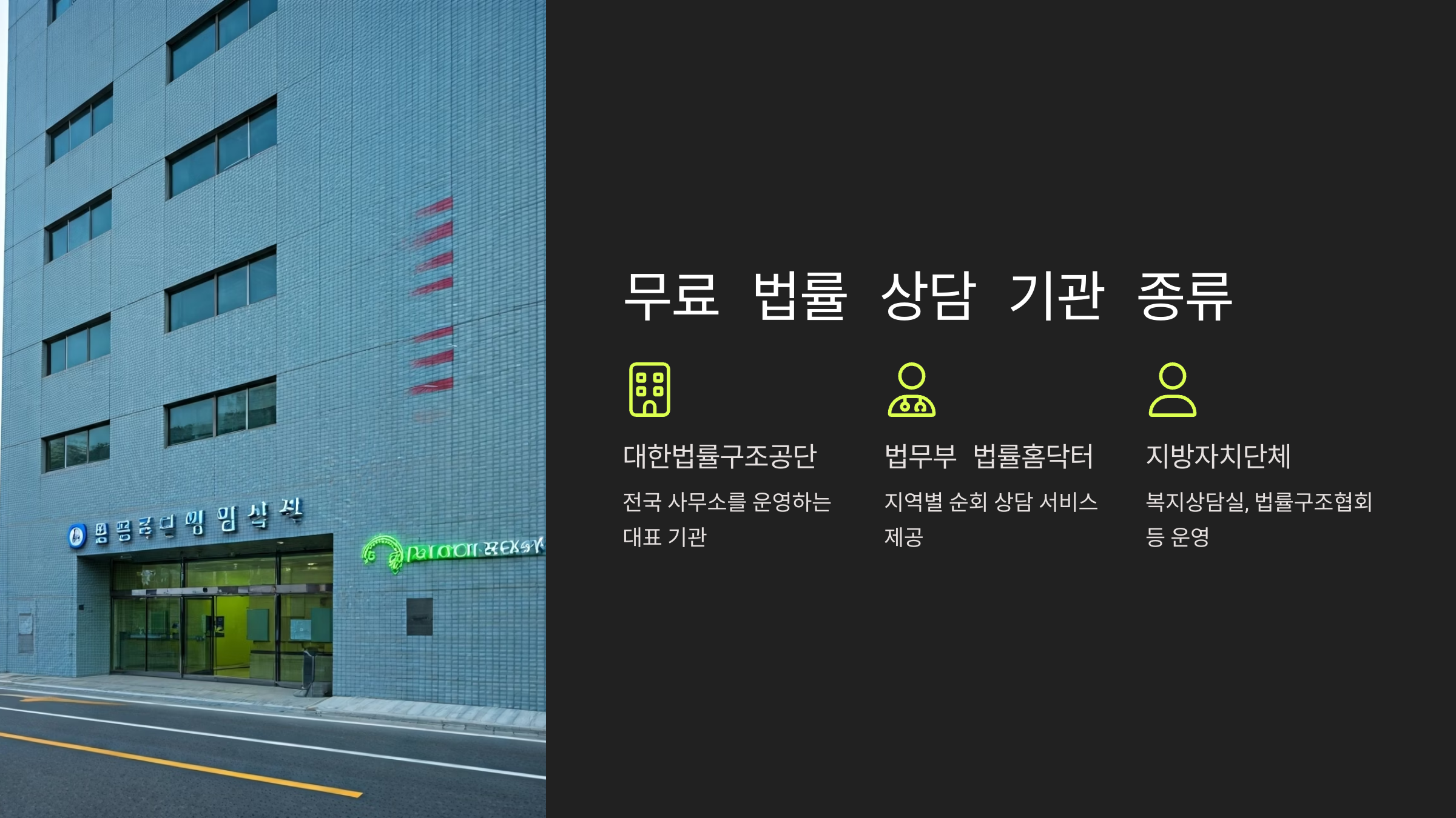 - 🌍 지자체 무료 변호사 배정제도 – 서울·부산 등 지방자치단체가 운영