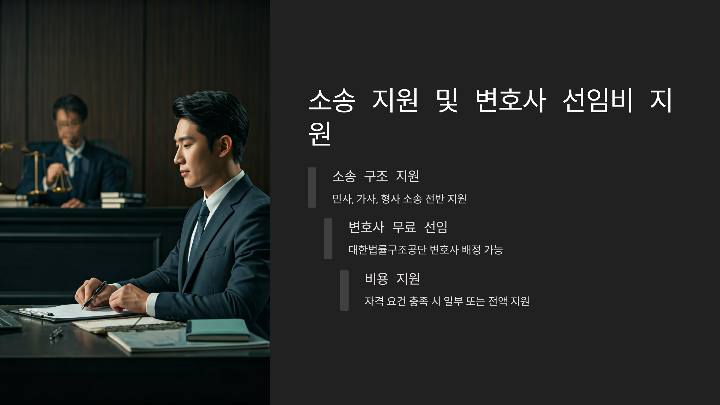 | 지원 범위 | 상담 + 소송 구조까지 가능 |