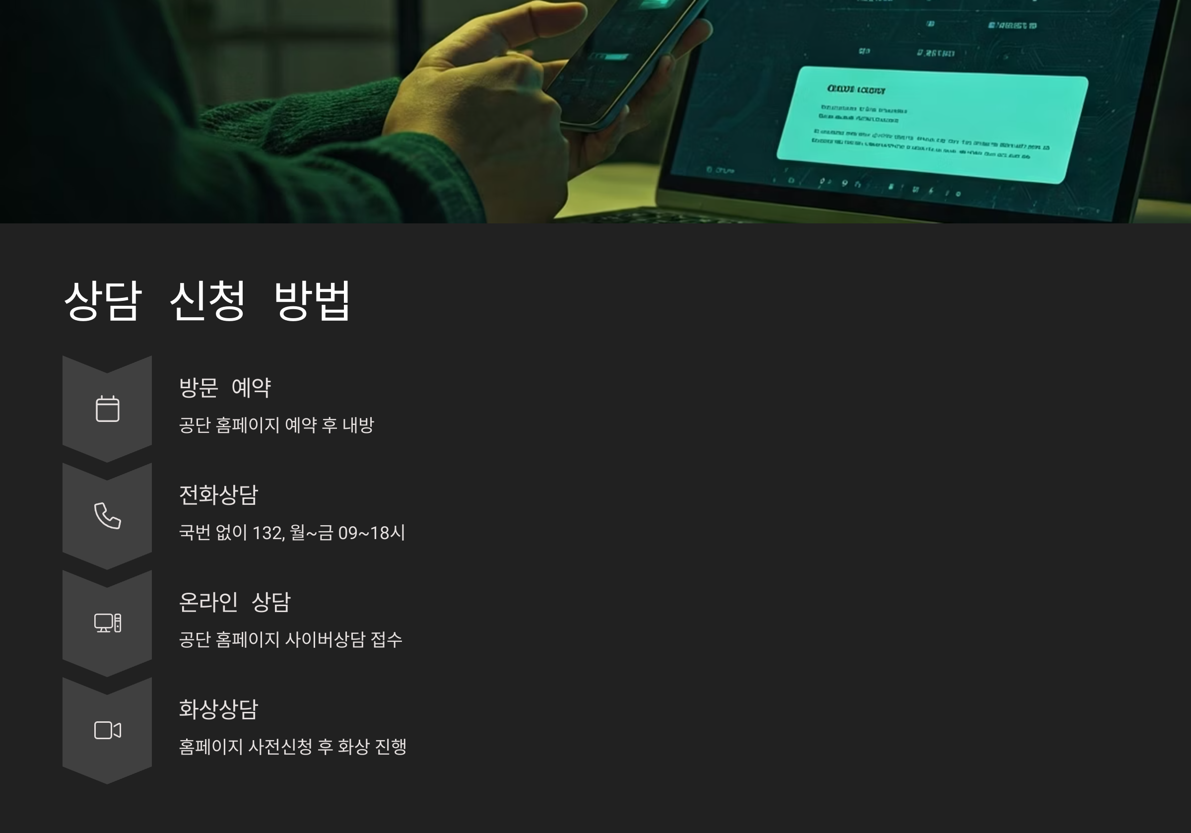 | 전화상담 | 132번으로 전화 → 상담원 연결 |