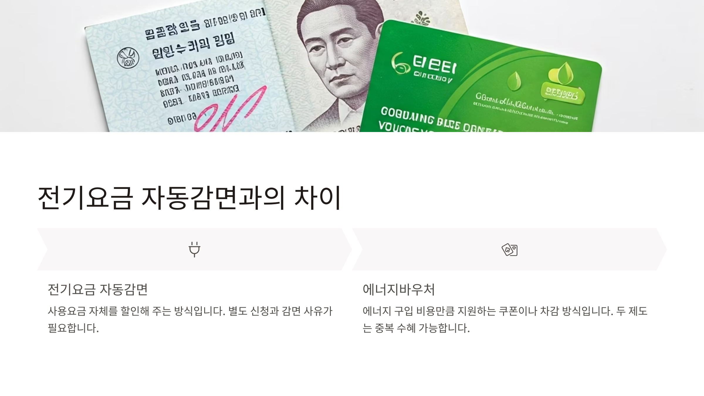 에너지바우처는 사용처가 따로 지정되어 있고, 전기요금 감면은 고지서에서 직접 차감되기 때문에 서로 다른 방식으로 수급이 가능해요.