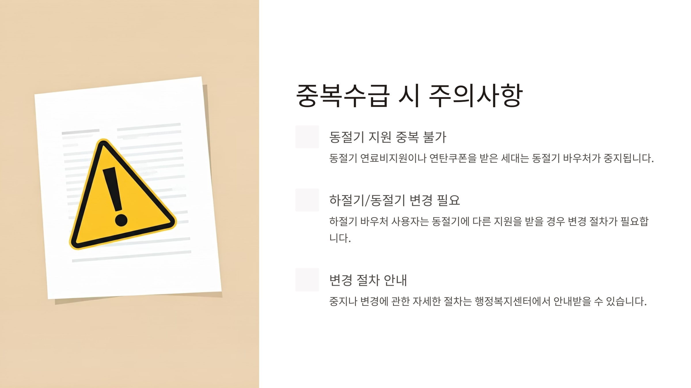 중복 수급은 가능하지만 아래와 같은 경우엔 주의가 필요해요!