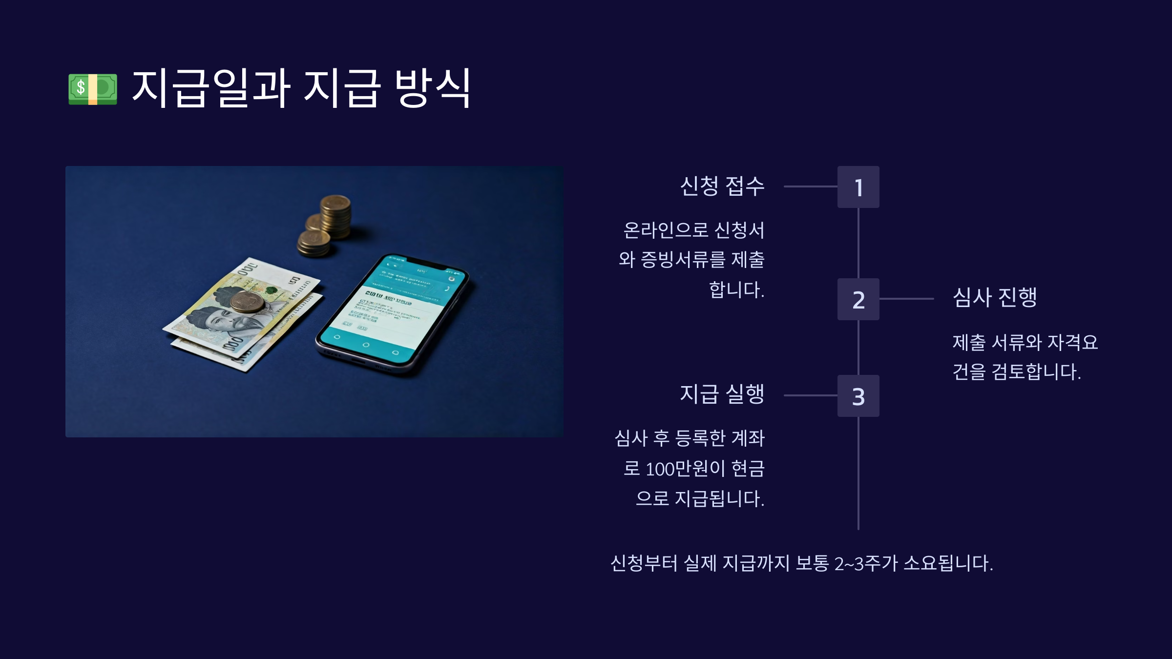 지급 방식은 신청자 본인 명의의 계좌로 직접 입금돼요.