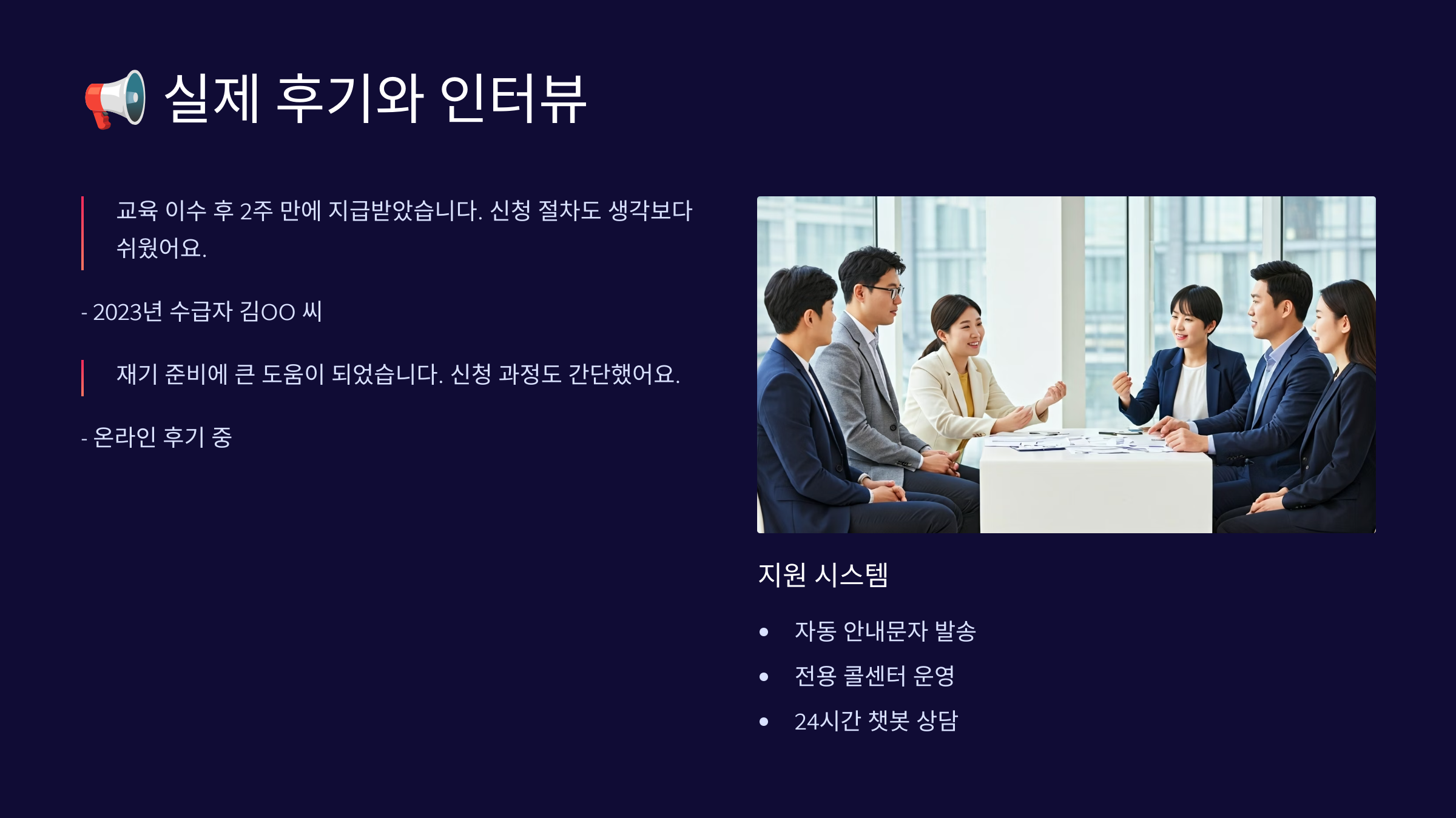 문자로도 알림이 와서 편했죠”라고 말했어요. 단, 신청서를 꼼꼼히 써야 빠른 처리와 입금이 가능하다는 조언도 덧붙였답니다.