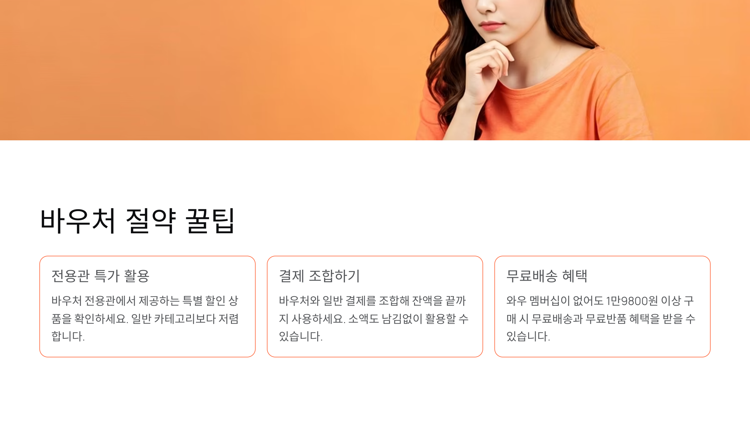 하지만 쿠팡의 결제 시스템상, **상품 카테고리 구분 없이 전체를 일반 결제로 처리**하기 때문에 바우처 자동 차감이 되지 않을 수 있어요.