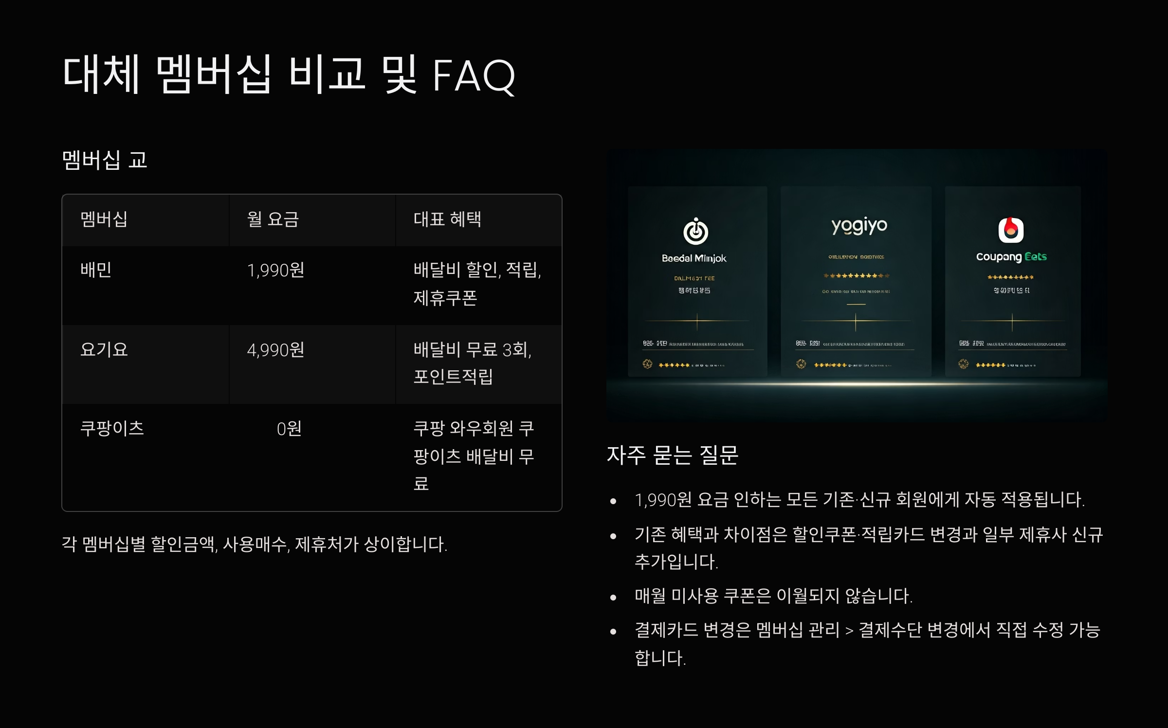 📊 주요 배달 멤버십 비교표