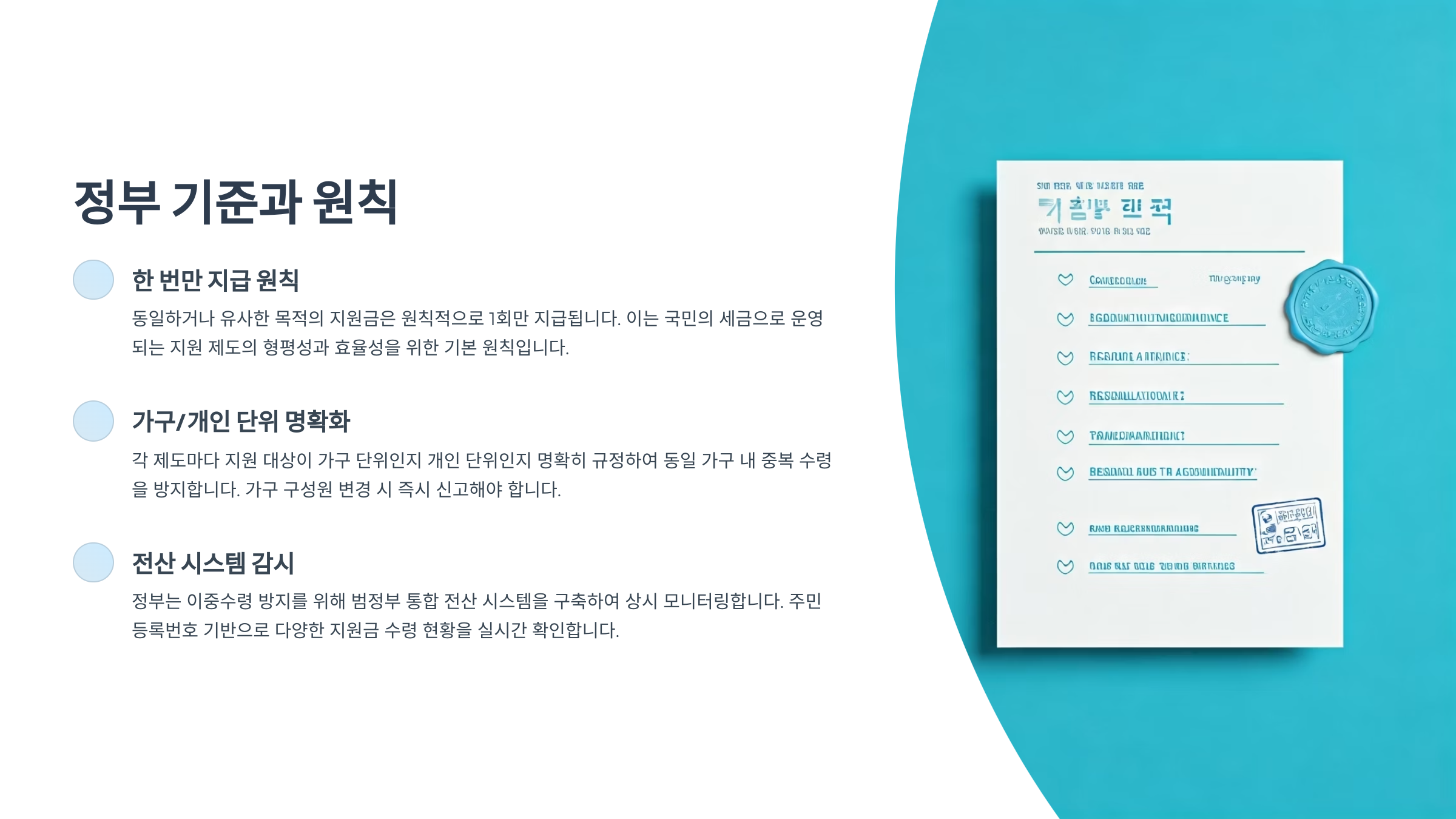 내가 생각했을 때, 정부가 중복 여부를 까다롭게 따지는 이유는 '이중 지원'을 막고, 꼭 필요한 분께 혜택을 집중하기 위해서라고 봐요.