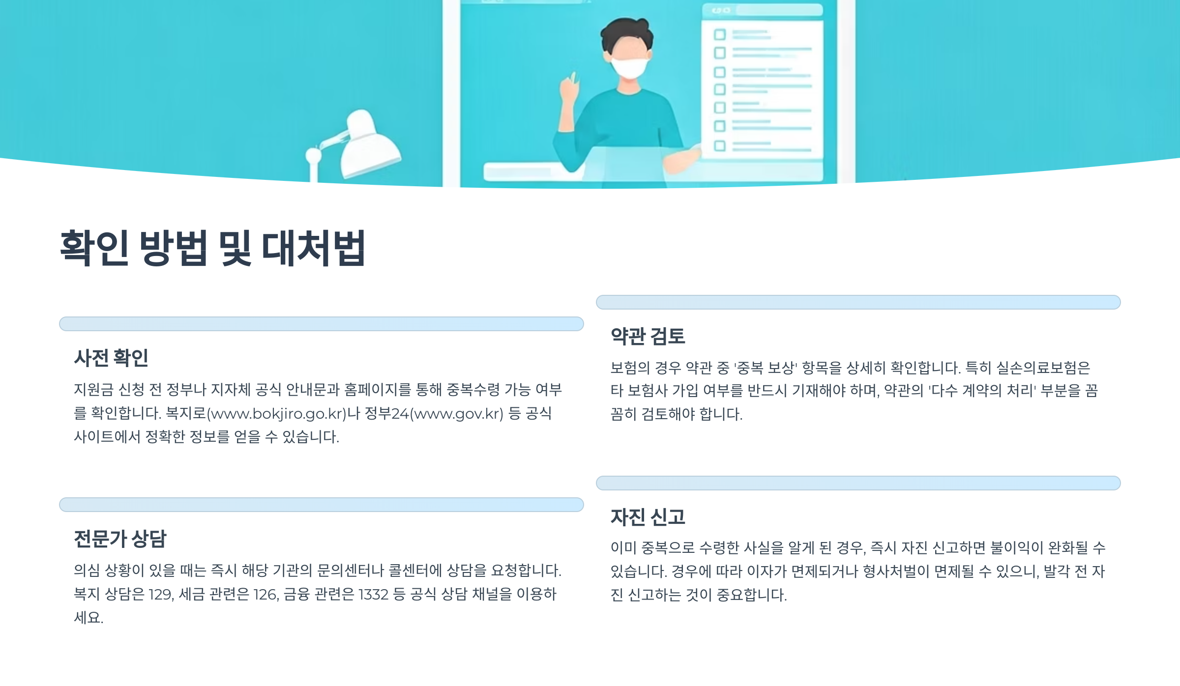 중복수령 여부는 자동으로 시스템에서 조회되고, 주민센터나 온라인 포털에서도 안내되기 때문에 '몰랐어요'는 통하지 않아요.