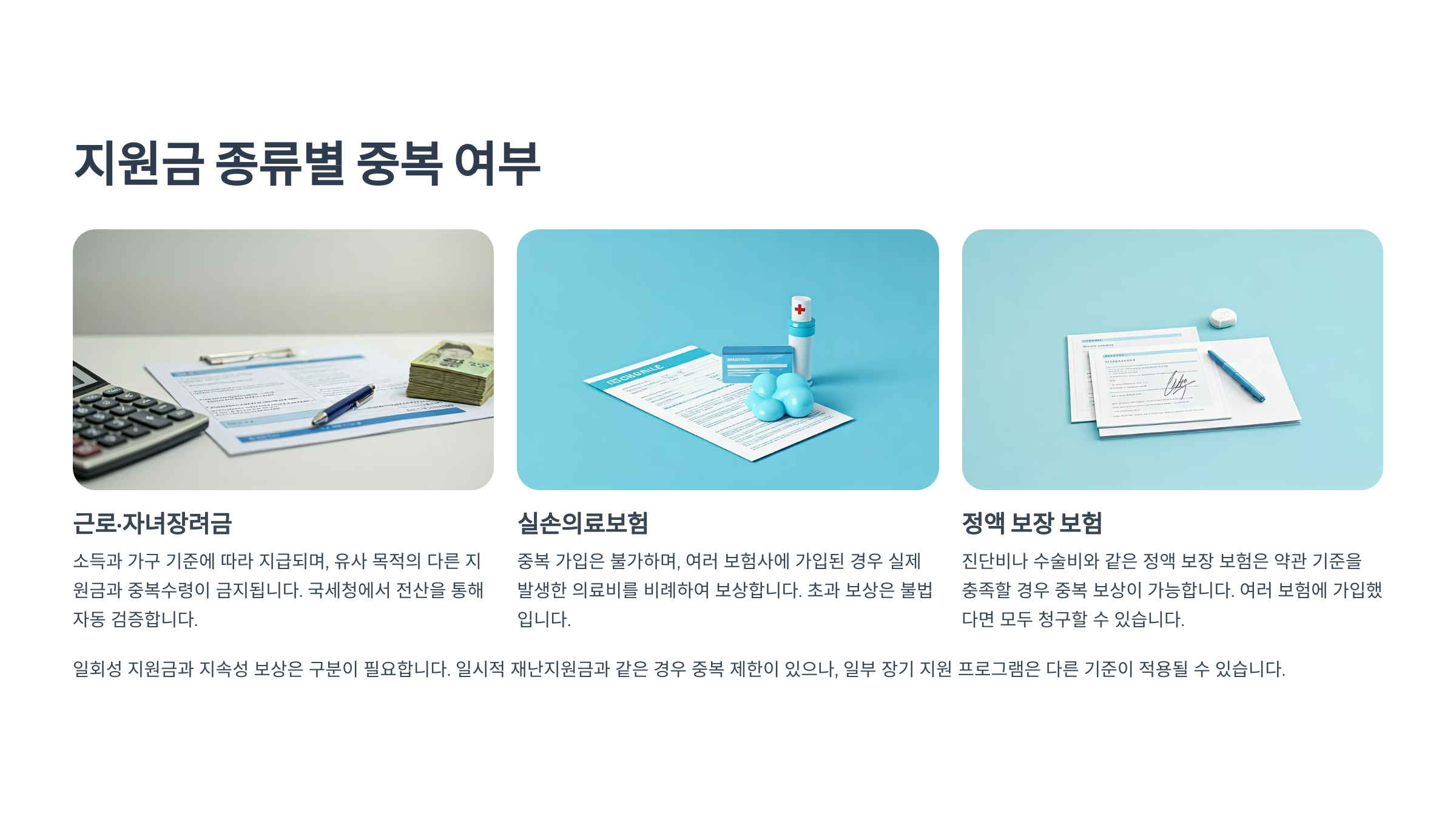 지원금의 성격과 종류, 목적에 따라 중복 수령 여부가 갈리기 때문에, 본인의 상황을 정확히 알고 체크하는 게 중요해요.