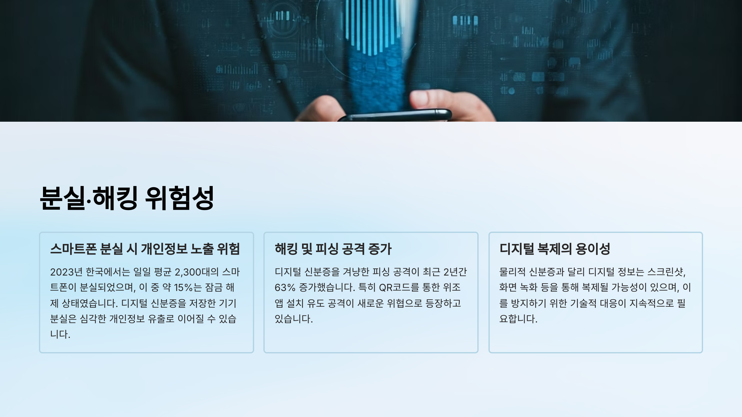 | 스마트폰 분실 | 신분증 도용 위험 |