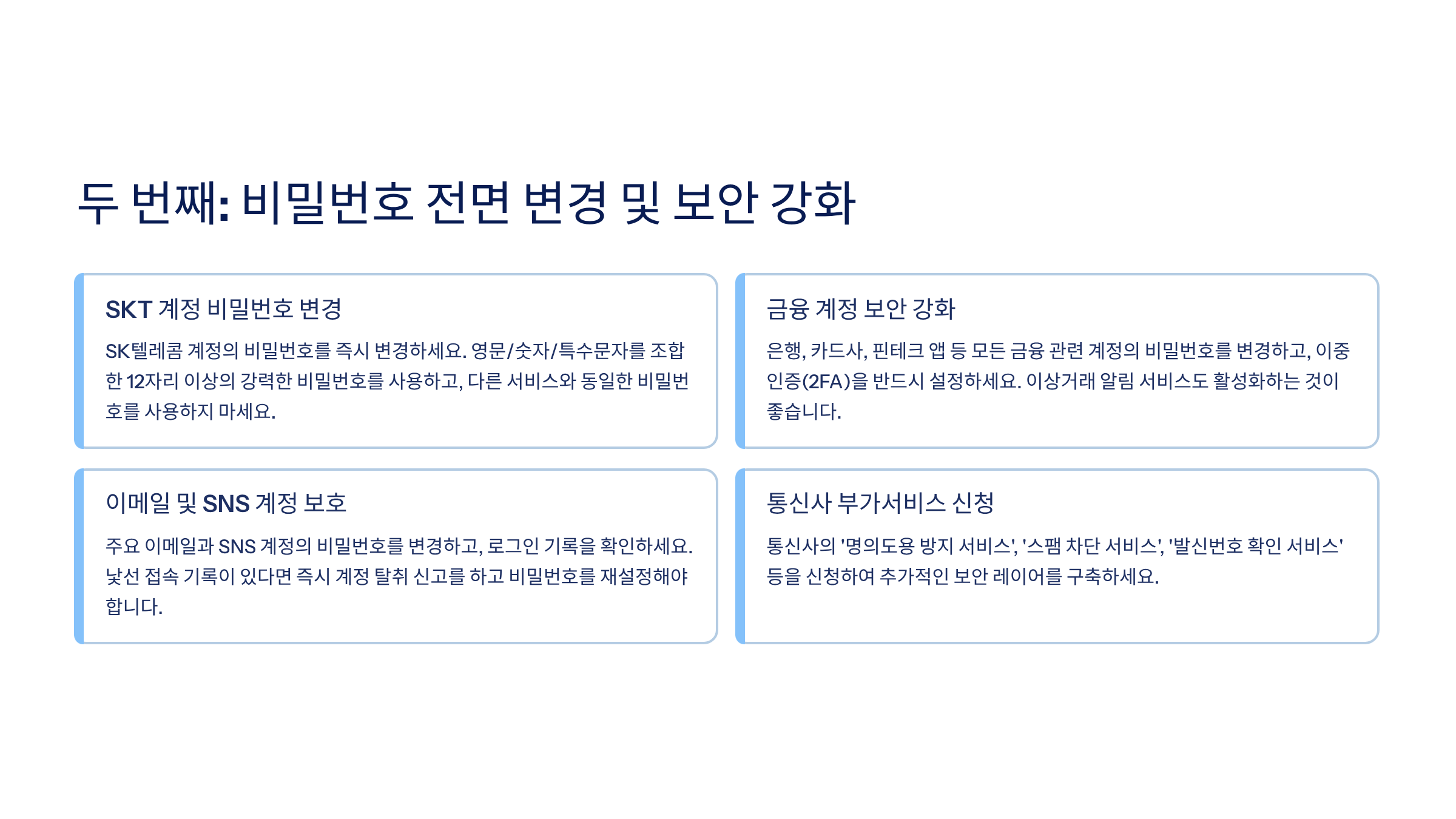 | 3순위 | 통신사 계정 | 비밀번호 변경 + 명의도용 방지 서비스 |