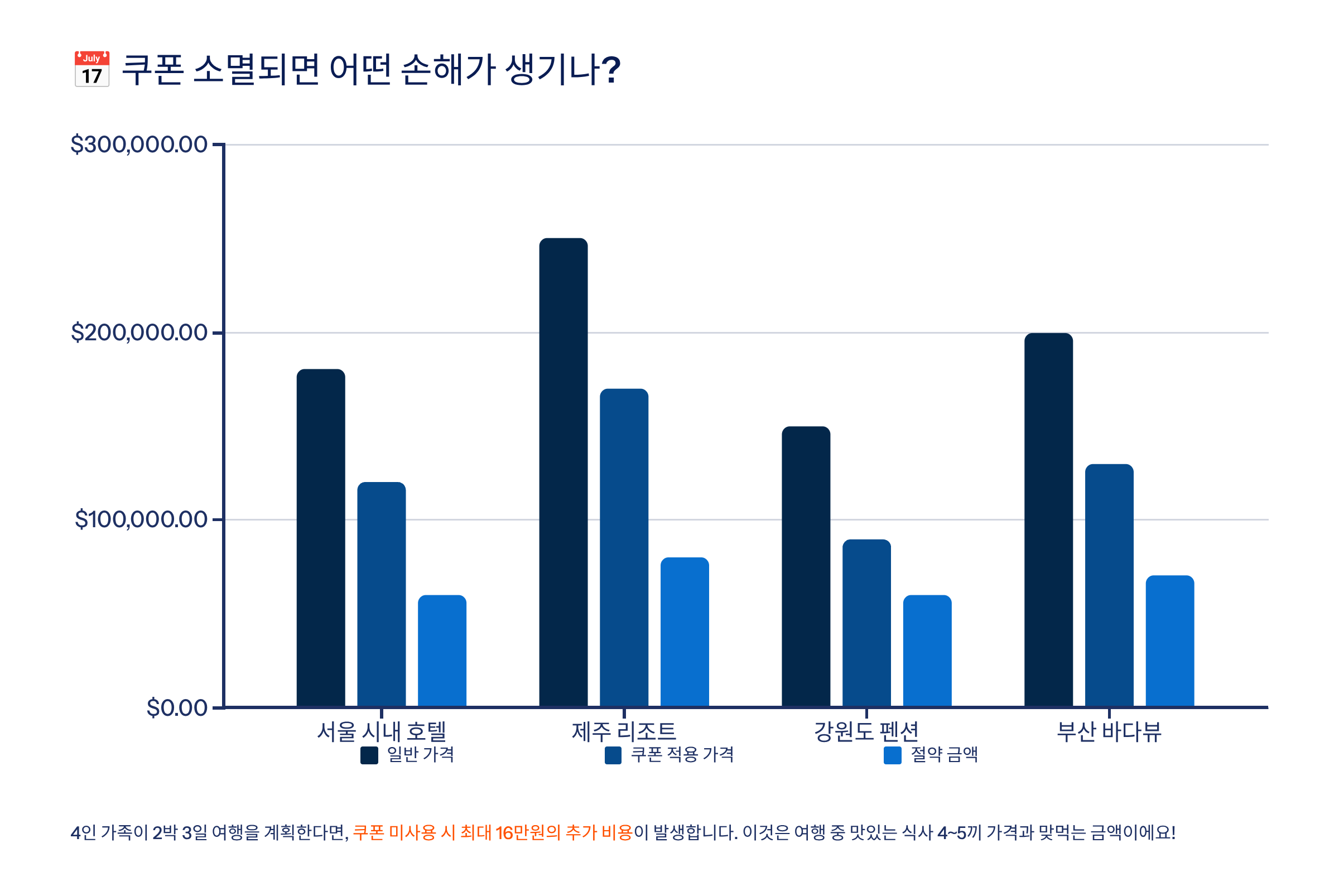 즉, 지금 바로 쓰지 않으면 단순히 3만 원 손해가 아니라 성수기 프리미엄 요금까지 그대로 내야 한다는 사실! ⛔