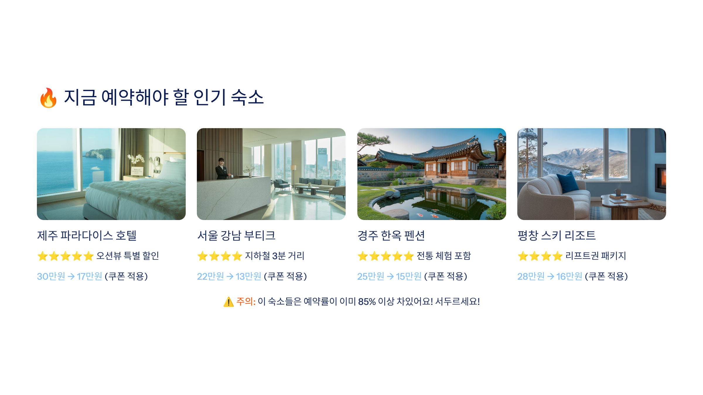 이 글에서는 👉 왜 서둘러야 하는지, 어떤 손해가 있는지, 지금 예약 가능한 인기 숙소와 꿀팁까지 정리해드릴게요.