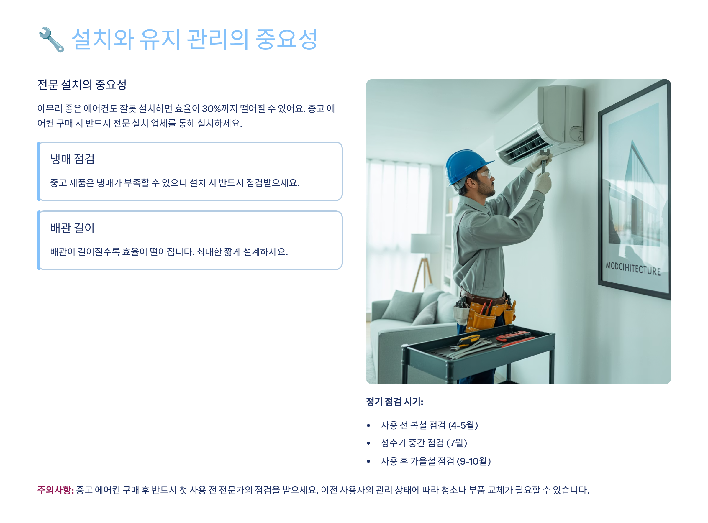 에너지 효율 1등급 중고에어컨을 사더라도, 설치와 관리 상태가 나쁘면 기대한 절약 효과를 제대로 못 볼 수 있어요. 그래서 설치 환경부터 신경 쓰는 게 정말 중요하답니다. 🛠️