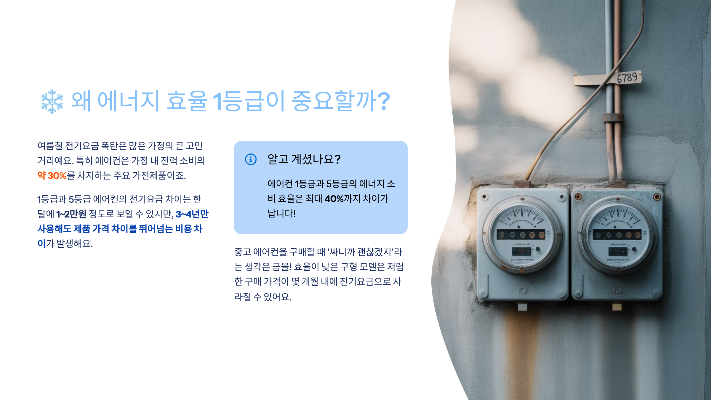 즉, 중고라도 설치 환경 + 관리 습관만 제대로 챙기면 1등급 제품의 효율을 100% 활용할 수 있다는 거예요. 결국 소비자가 관리에 얼마나 신경 쓰느냐가 전기세 절약의 핵심이죠. 👍