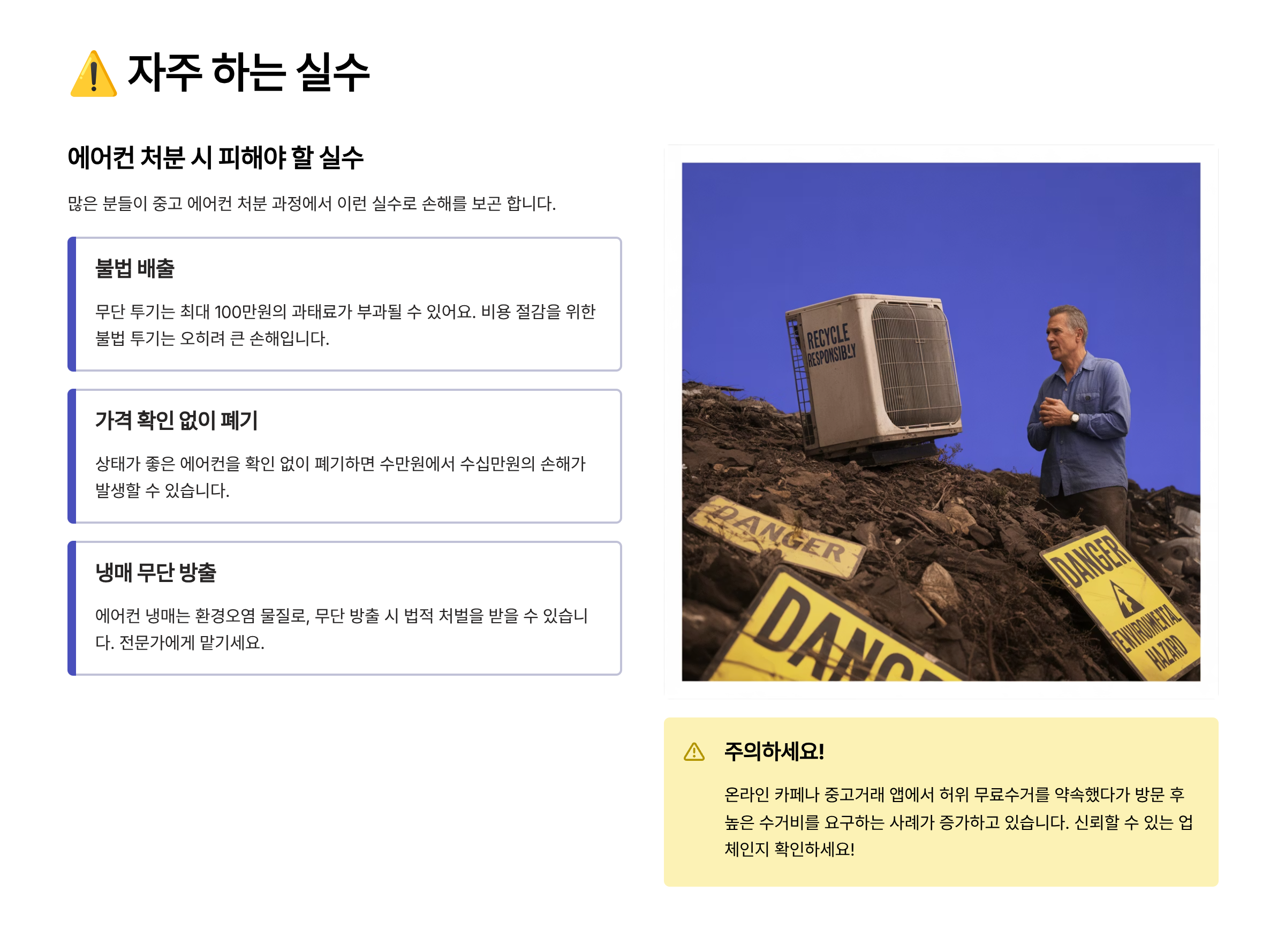 본 글은 정보 제공 목적이며, 실제 매입·수거·폐기 조건은 현장 상황과 업체 정책에 따라 달라질 수 있습니다. 반드시 전화 상담을 통해 확인하세요.