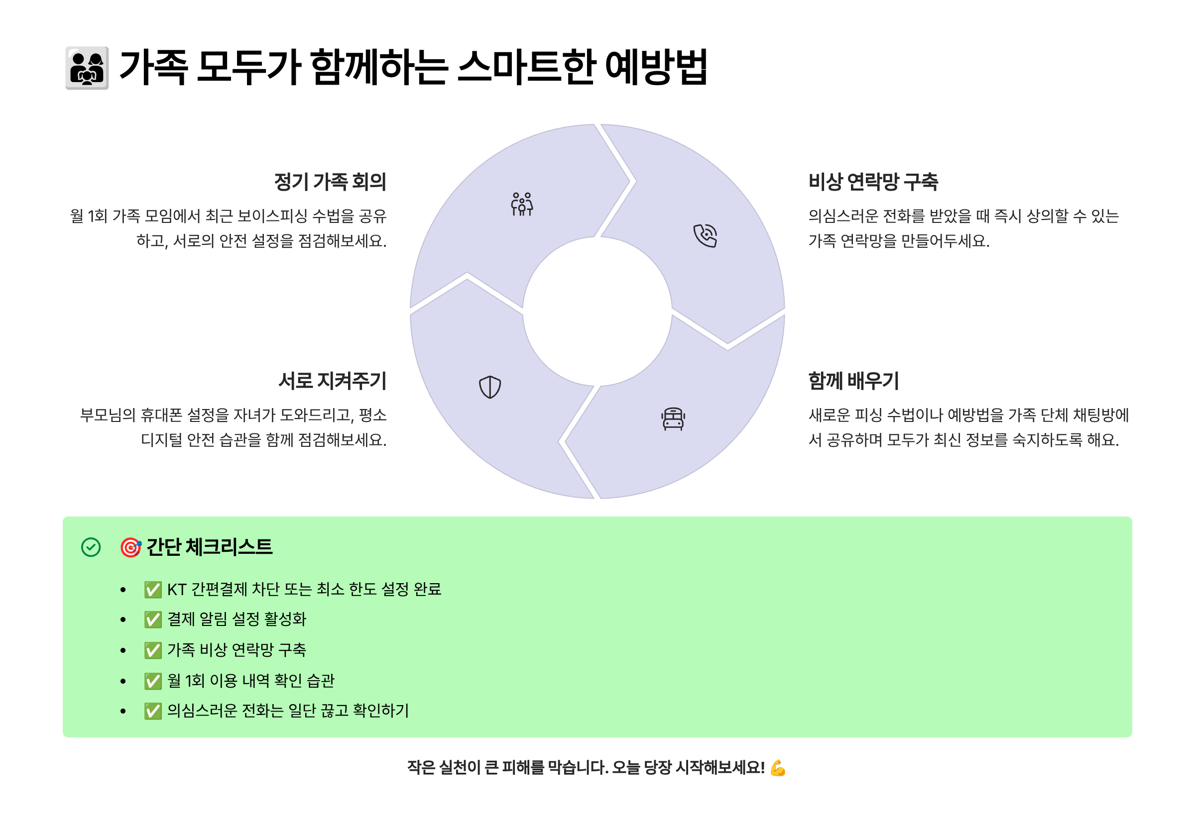 보이스피싱은 가족이 함께 관심을 가지고 지켜야 예방 효과가 커져요. 특히 부모님이 피싱 전화를 받더라도 가족과 바로 상의할 수 있는 분위기가 중요해요. 🤝