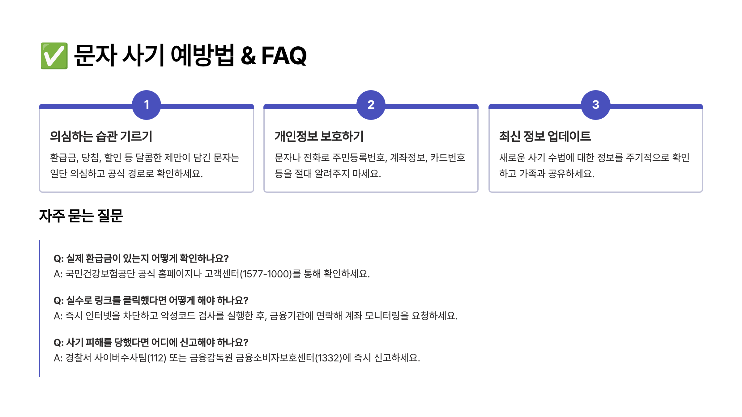 이 다섯 가지만 생활화하면, 환급 사기 문자는 더 이상 위협이 되지 않아요. 결국 예방은 ‘습관화’에 있다는 점, 꼭 기억하세요 👍