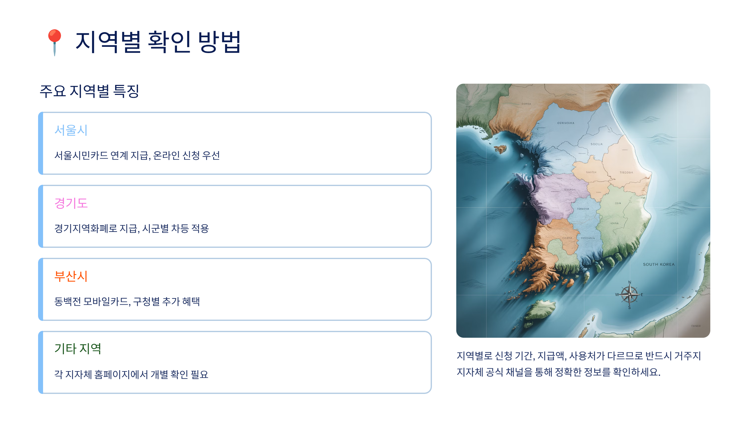 ※ 본 콘텐츠는 2025년 9월 기준으로 작성되었으며, 실제 지역별 정책 및 지급 내용은 변동될 수 있습니다. 반드시 각 지자체 공식 홈페이지 또는 복지 담당 부서에서 최신 정보를 확인하세요.