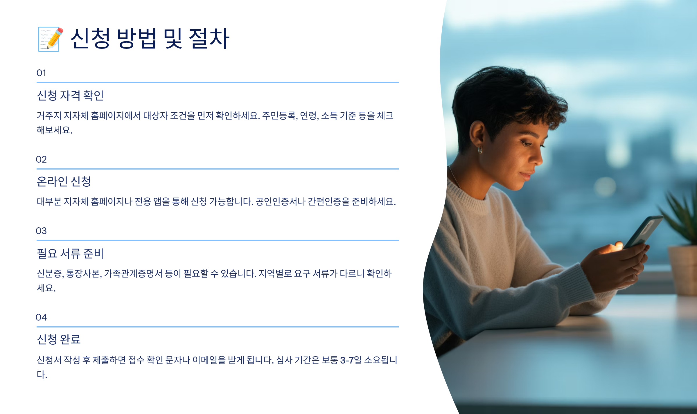 정확한 자격 여부는 주민센터나 지자체 홈페이지를 통해 쉽게 확인 가능해요. 😊