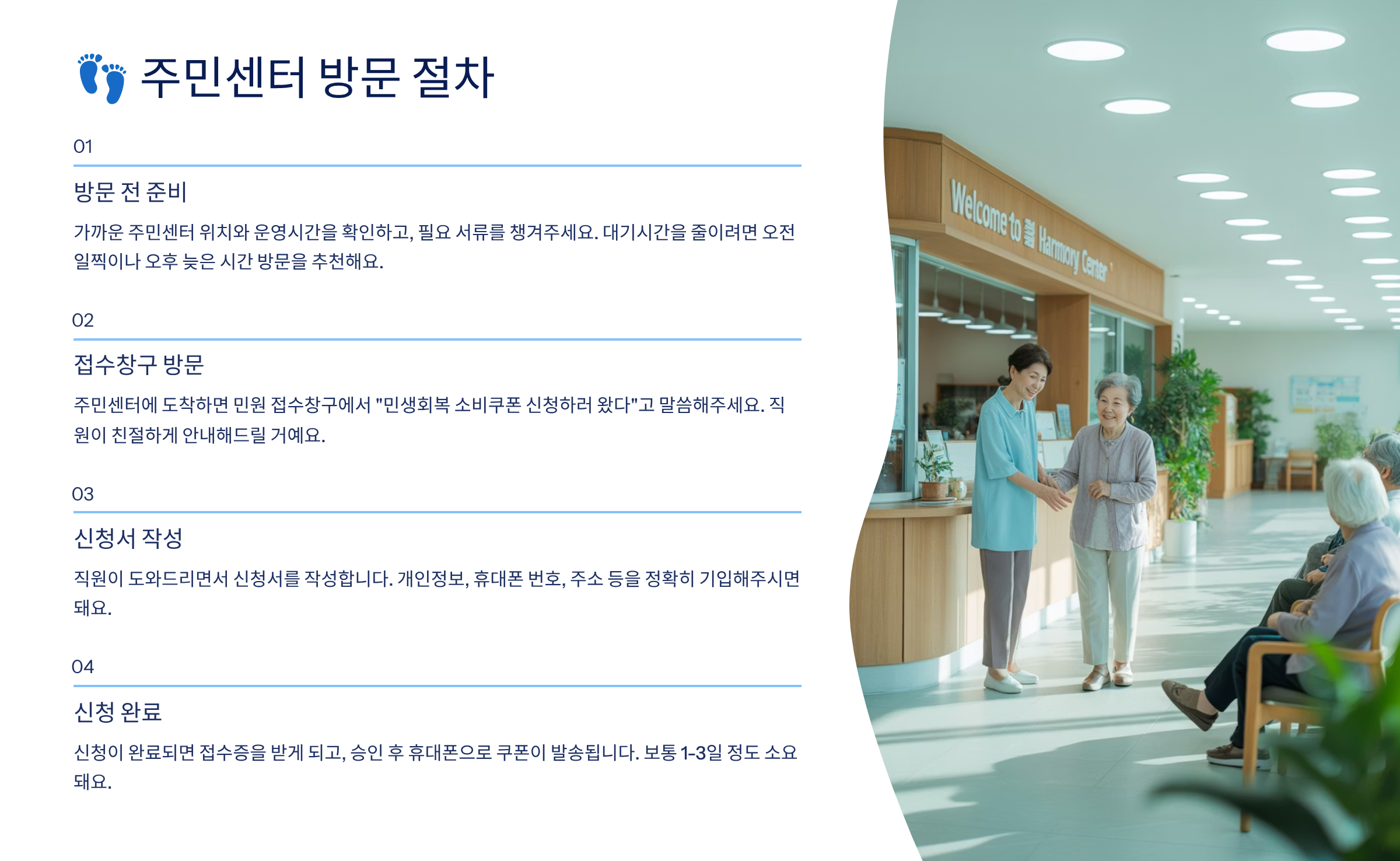 혹시 부모님이나 어르신들이 “인터넷은 어려워서 못하겠다” 하시나요? 걱정 안 하셔도 돼요. 🙆 오프라인으로도 민생회복 소비쿠폰 신청이 가능해요.