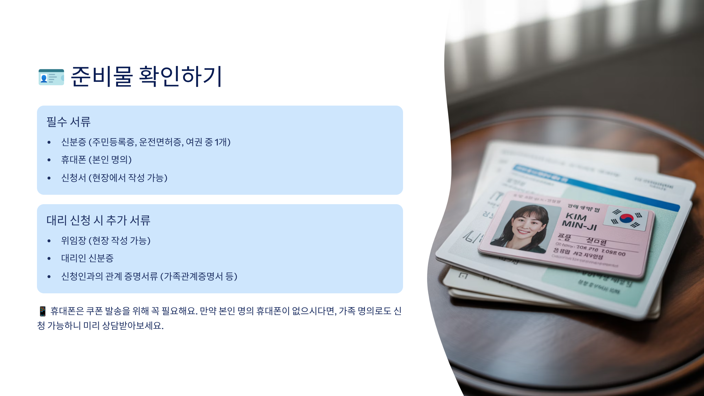 신청 시 필요한 준비물은 단순해요. 반드시 챙겨가셔야 해요.
