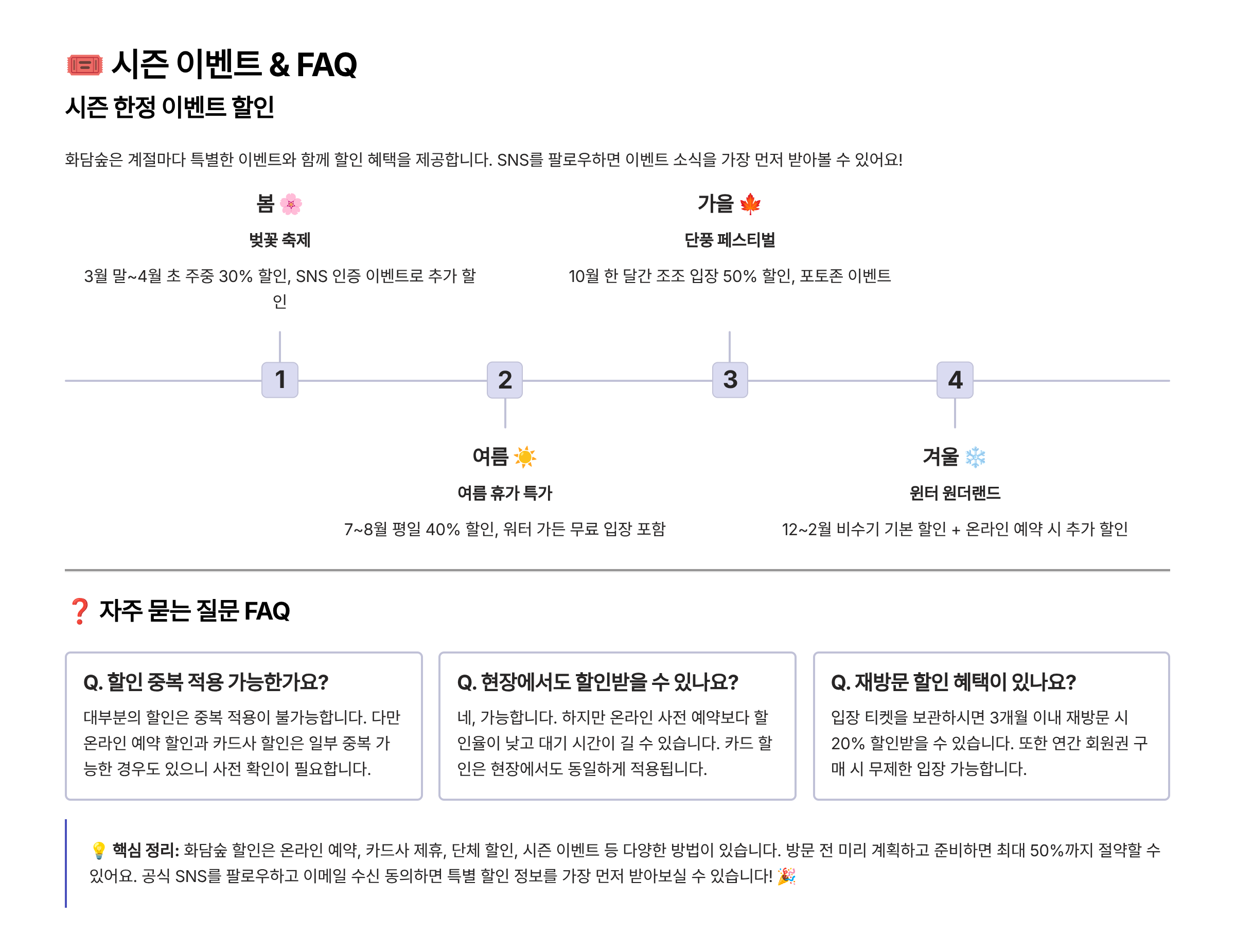 | 봄 (4~5월) | 10% 할인 + 체험 부스 | 사전예약자 대상 |